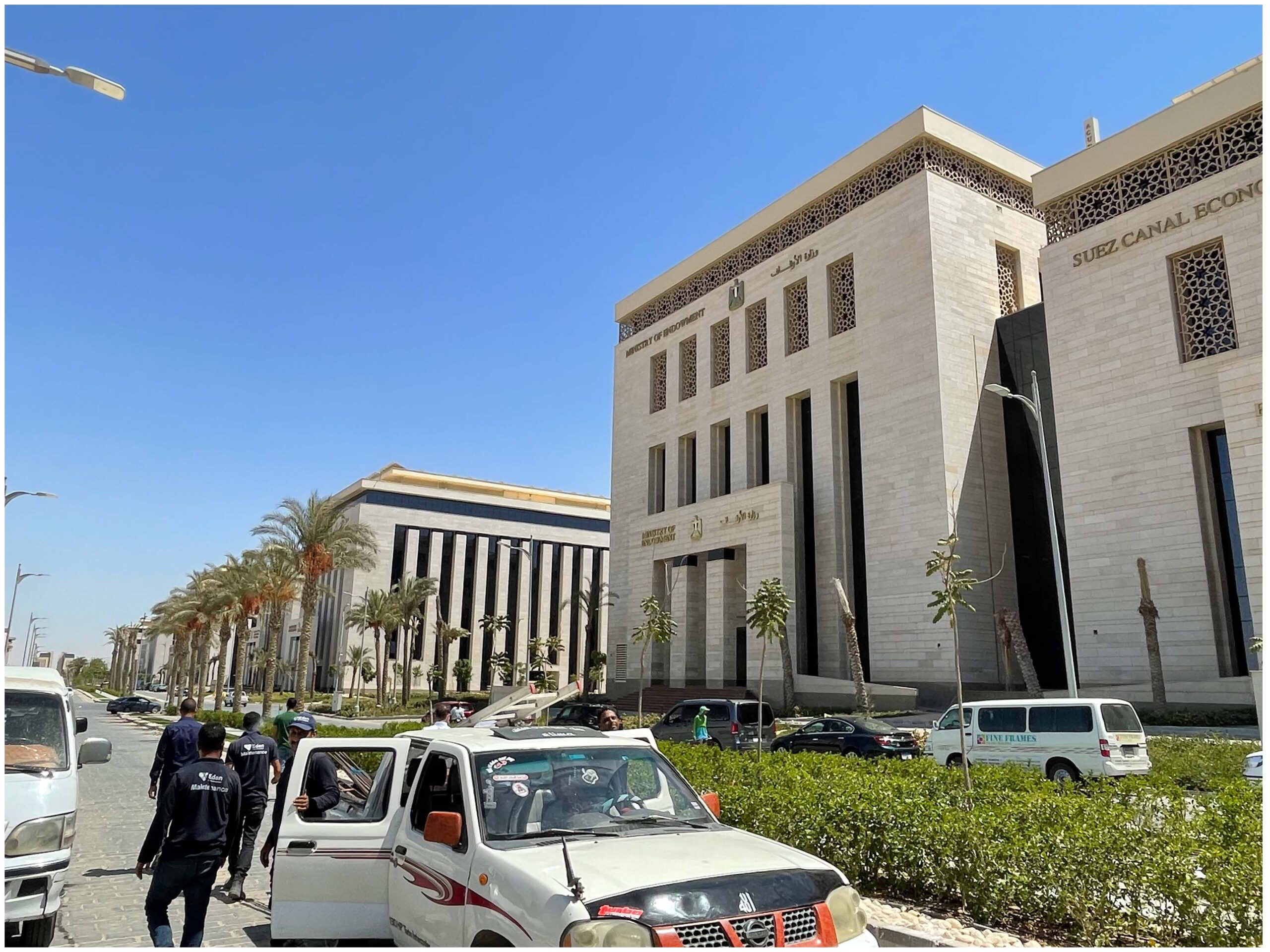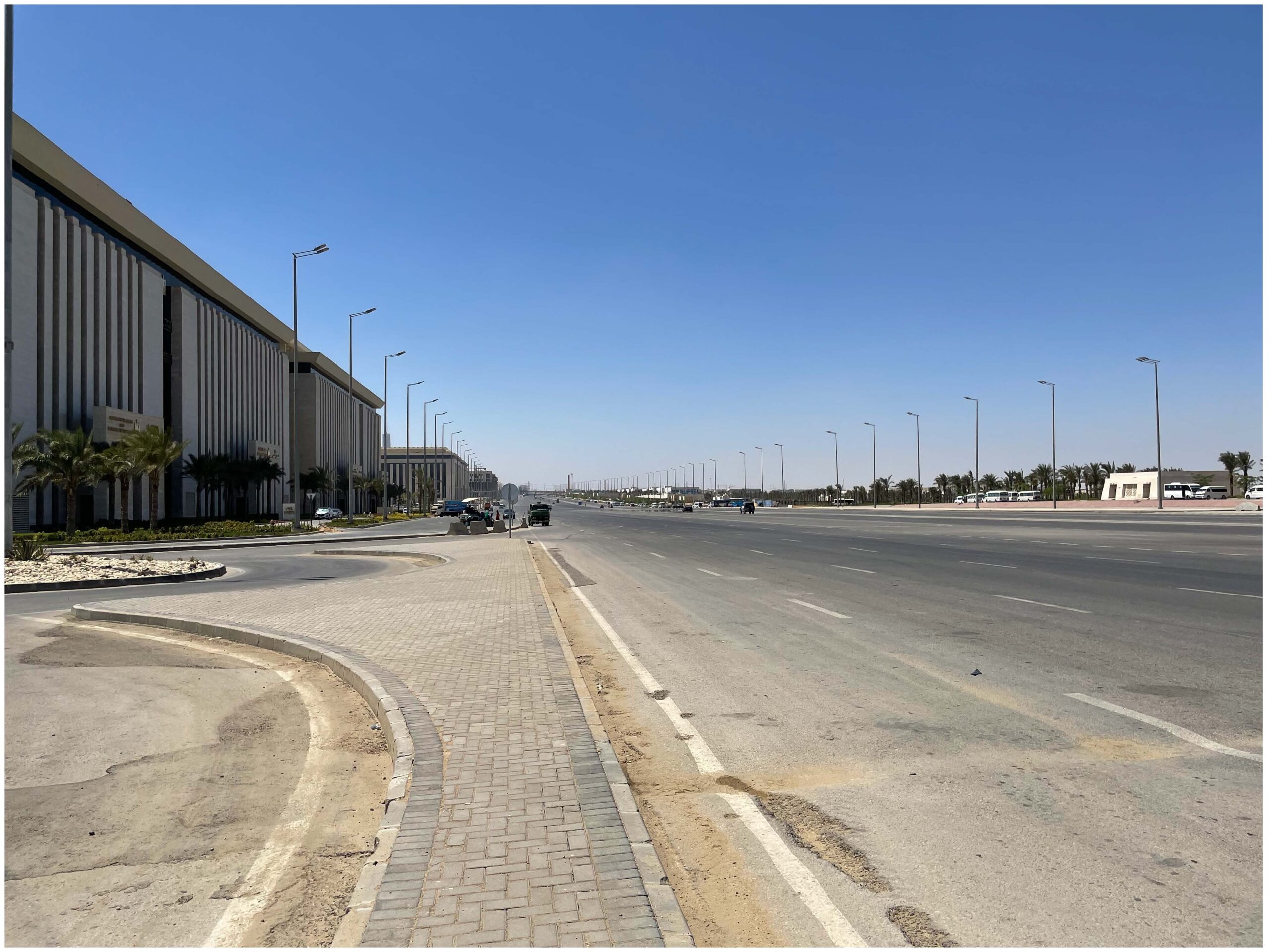 Die unten stehenden Bilder geben einen Eindruck vom derzeitigen Stadtbild der NAC Cairo. Große Straßenzüge, repräsentative Gebäude für Ministerien, Banken etc, aber auch Hotels und Bürogebäude mit immer mehr Publikumsverkehr bestimmen das Bild. Und wasserwirtschaftlich natürlich interessant, das viele, künstlich zu bewässernde Grün, das schon heute mehr als 150.000 Kubikmeter Wasser pro Tag verbraucht. Fotos (c) Dr. Michael Beckereit