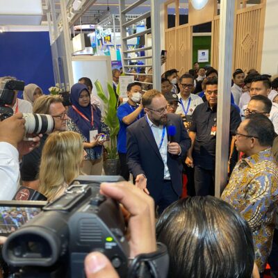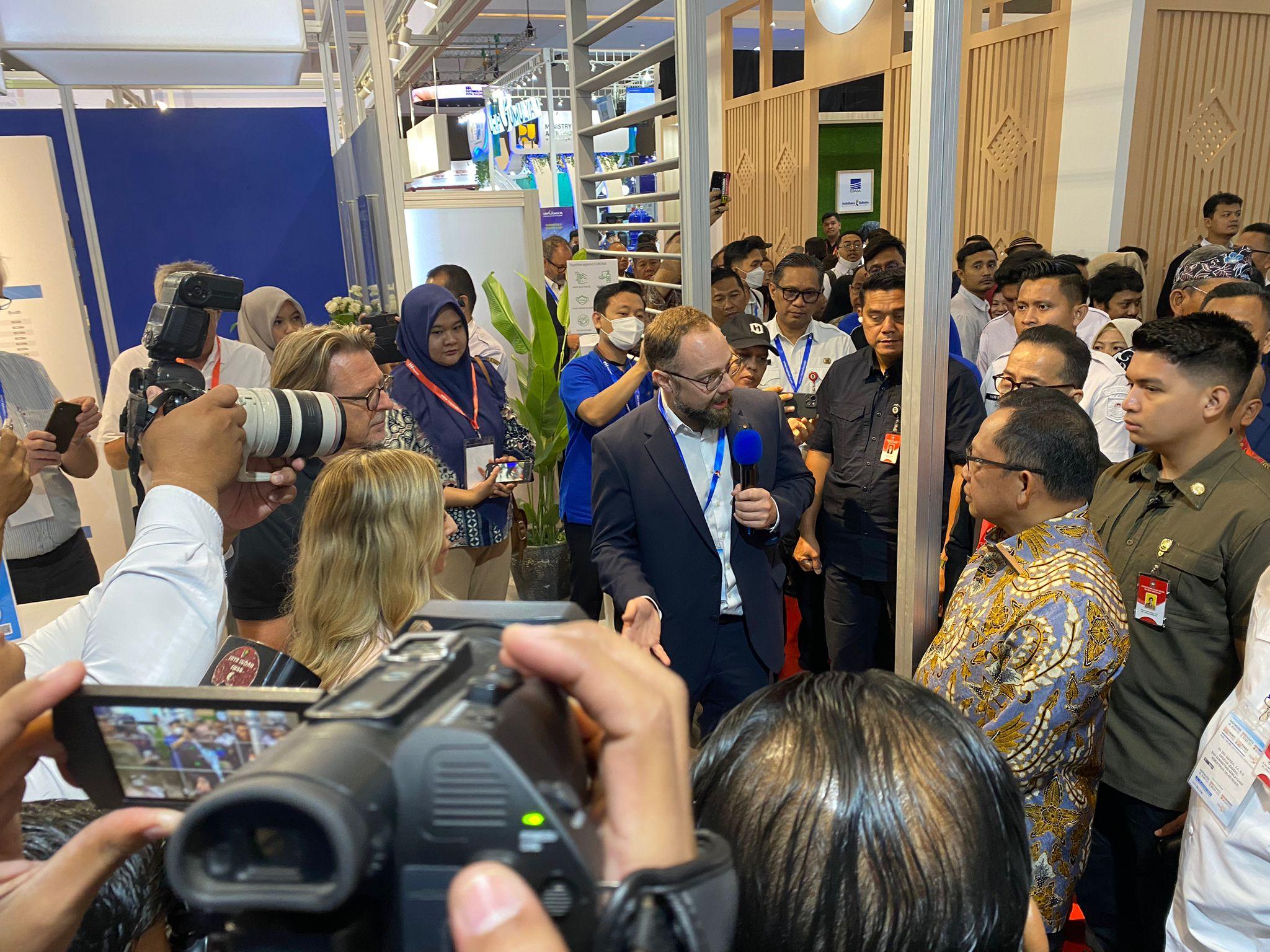 Die Veranstaltung wurde durch die Anwesenheit von Muhammad Tito Karnavian, dem Innenminister der Republik Indonesien, bereichert, der auf der Eröffnungsfeier auch die Bedeutung internationaler Partnerschaften betonte. Minister Karnavian wurde herzlich am German Pavilion begrüßt, wo er sich mit unserem Regionalreferenten Fabian Fischer austauschte und über die dort präsentierten Technologien informierte. Darüber hinaus nutzte Jan Groschoff, der Vertreter der deutschen Botschaft in Indonesien, die Gelegenheit, das umfangreiche Netzwerk und die beeindruckenden Aktivitäten der vertretenen Mitgliedsunternehmen während seines Besuchs am gemeinsamen Stand kennenzulernen.