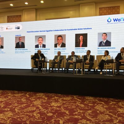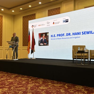 Vor diesem Hintergrund traf sich am 24. September 2025 die Wasserwirtschaft zum German-Egyptian Collaboration for Sustainable Water Solutions Forum 2025 in Kairo. Veranstaltet wurde das Forum von GWP in Zusammenarbeit mit der Deutsch-Arabischen Industrie- und Handelskammer (AHK Ägypten) sowie dem Wirtschaftsnetzwerk Afrika, ein Service von Germany Trade & Invest (GTAI), gefördert durch das Bundesministerium für Wirtschaft und Energie (BMWE). Es richtete sich an Unternehmen, Institutionen und Entscheidungsträger aus dem Bereich der deutschen und ägyptischen Wasserwirtschaft. GWP war gemeinsam mit 11 deutschen Mitgliedsunternehmen vor Ort, darunter Aerzener Maschinenfabrik GmbH, Rudolf Messner Umwelttechnik AG, Mitsubishi Electric Europe B.V., Tholander Ablufttechnik GmbH, bauku extrusion technology UG, Nivus GmbH, KSB SE & Co. KGaA, Vision Green Solutions GmbH, WTA Unisol GmbH, ARTAS UMWELTTECHNOLOGIE GmbH und Roediger Vacuum GmbH. Das Forum bot eine Plattform für den Austausch von Best Practices, die Vorstellung innovativer Technologien und die Förderung von Partnerschaften zwischen deutschen und ägyptischen Akteuren. Im Mittelpunkt standen praxisorientierte Lösungen für die Herausforderungen der Wasserknappheit und -verschmutzung in Ägypten. Eröffnet wurde die hochrangige Veranstaltung durch H.E. Prof. Dr. Hani Sewilam, Minister of Water Resources and Irrigation.
