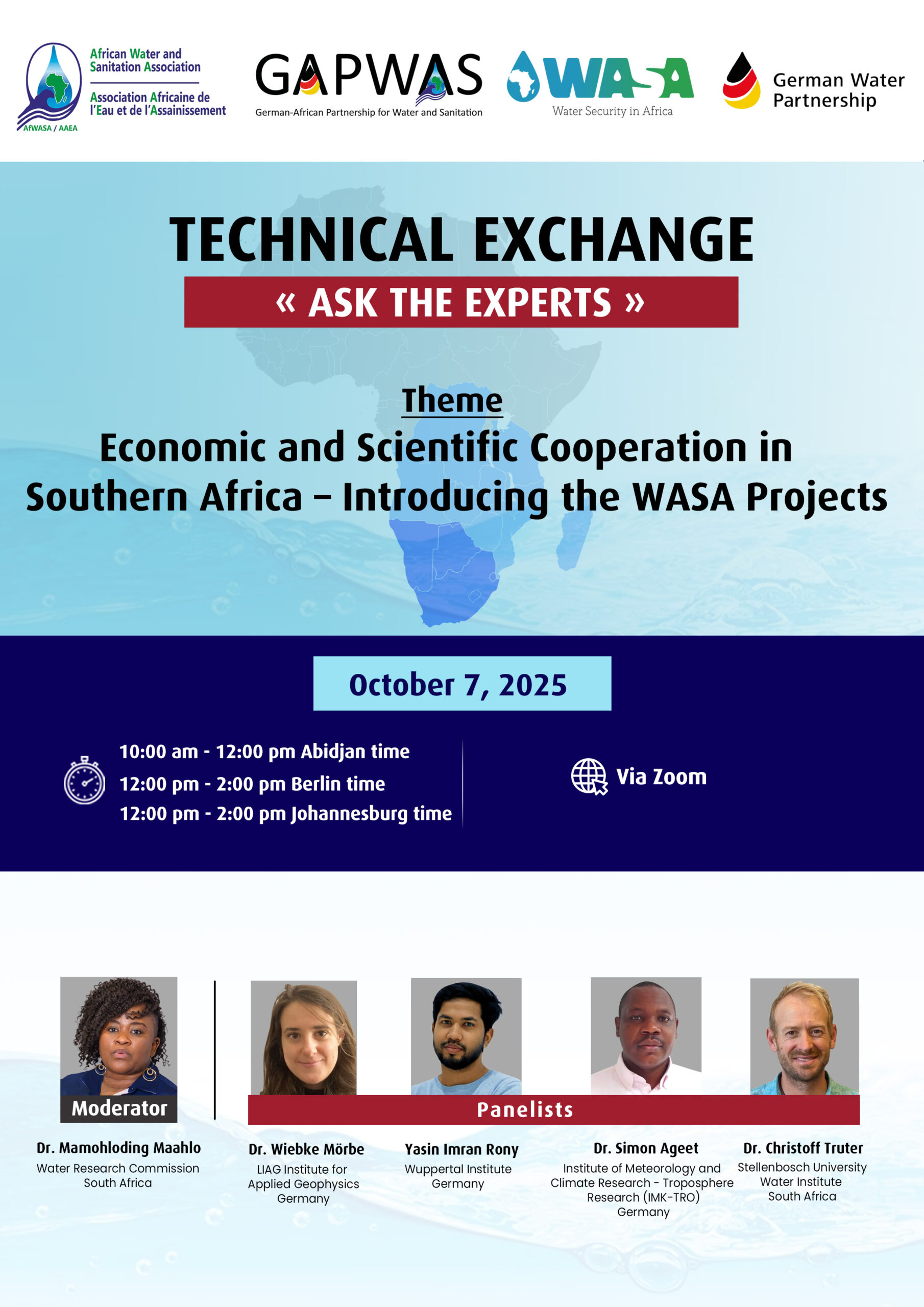 “Ask the Experts” is a series of events organized as part of the German-African Partnership for Water and Sanitation (GAPWAS), our partnership project with the African Water and Sanitation Association (AfWASA) in Abidjan, Côte d’Ivoire. The concept aims to promote professional exchange between German and African experts in the water and wastewater sector while addressing specific challenges faced by members of both associations.