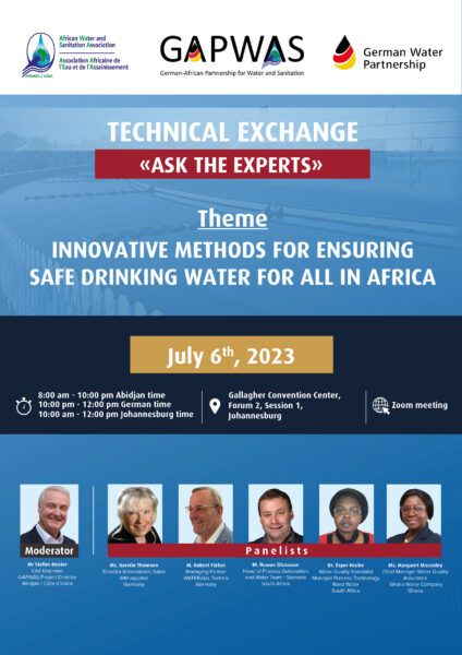 “Ask the Experts” is a series of events within the framework of the German-African Partnership for Water and Sanitation (GAPWAS), our partnership project with the African Water and Sanitation Association (AfWASA) in Abidjan, Côte d’Ivoire. The concept aims at promoting technical exchange between German and African experts in the water and sanitation sector while addressing specific challenges faced by members of both associations.